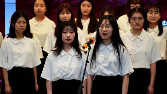 20学前教育(国际课程合作)1班带来的《我爱你中国》。同学们用平稳有力的声音融情于景,随着一声高比一声的“我爱你中国”,表达了对党、对祖国、对故乡、对亲人和一切美好事物的爱。