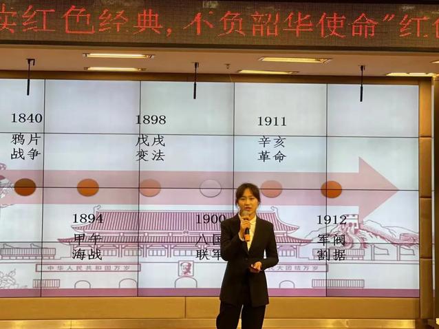 来自20学前教育1班的范璐鑫诉说了红色经典著作在每一个青年人心中埋下的种子,正是那些先烈勇于奉献的崇高品质,使我们拥有着如今和谐幸福的生活。
