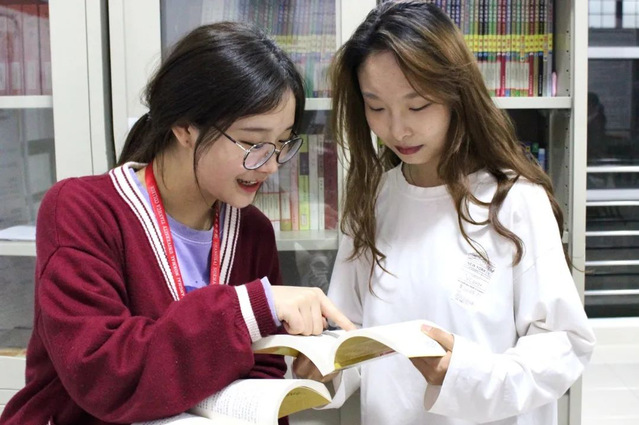 在班助理工作园地内摆放了国内外经典文学作品,其中就包含我校经典阅读推荐的30本书目。在晚自习还没开始前,班助理和新生来到工作园地的图书角,翻阅书本,一起讨论书本中看到的精彩部分,交流氛围浓烈,常会吸引更多班助理与新生的加入。