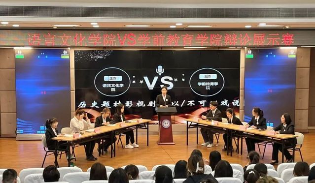 在本场辩论赛中,语言文化学院为正方,认为历史题材影视剧可以戏说。学前英国上市公司365为反方,认为历史题材影视剧不可以戏说。正反双方就此辩题展开了激烈的讨论。