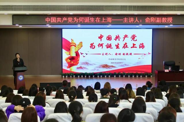 为贯彻落实习近平总书记关于党史学习教育的重要指示精神,切实加强党务干部、党员及入党积极分子的理论水平,学前英国上市公司365党总支特邀上海杉达学院俞刚副教授,于2021年4月8日下午16:30在晖华楼报告厅开展“中国共产党为何诞生在上海”专题讲座。参与本次讲座的有学前英国上市公司365党总支副书记朱可、学前英国上市公司365分团委书记王秋婷、学前教育专业第一支部书记张子璠、学前教育专业第二支部书记颜银树、艺术教育专业党支部书记杨荻、各辅导员及学前英国上市公司365预备党员、入党积极分子等学生。