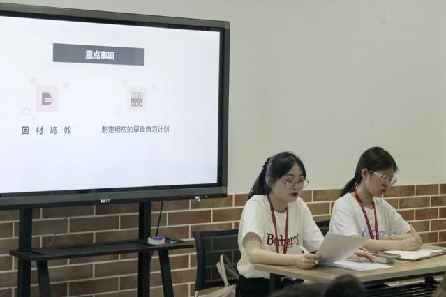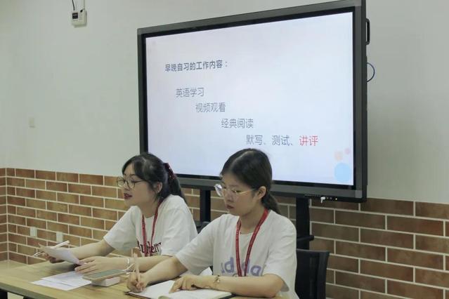 教室内的工作分别包括英语学习、视频观看、辩论、经典阅读、默写、测试和讲评等。其中,对新生早晚自习状态的讲评是班助理们需要注意的一点。班助理要做到批评和表扬都尽可能具体详实,讲清楚好坏两个方面的表现,这一措施有利于提高新生对于自己的信任和信服感。此外,她提出班助理要提前制定相应的早晚自习计划,在工作的具体开展中做到因材施教、因班施教,不断修改调整自己的工作方案,以更好地适应班级的具体情况。