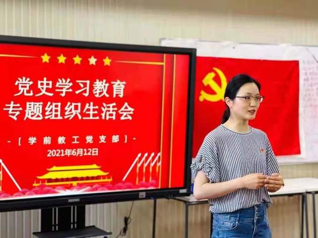 为推动党史学习走深走实,结合学校党委党史学习教育工作部署安排,学前英国上市公司365教工党支部于2021年6月12日在光华楼204室召开了“党史学习教育”专题组织生活会,会议由学前教工党支部副书记田剑玫老师主持。