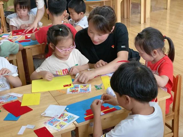 活动过程中,孩子们在师生党员的带领下,进行构图、拼贴,创意无限,都发挥了自己的聪明才智,独具匠心地制作出了自己的作品,来表达对祖国、对党的热爱之情。