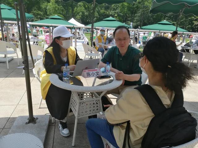 首先,志愿者们先到活动地进行签到,并在活动负责人的统筹安排下,领取马甲、工作证和帽子。随后,志愿者们根据组织安排,领取工作任务:每个人负责记录一位专家与家长进行对谈的内容。接着,志愿者们赶赴相应的专家咨询处,静待专家的到来。待专家到来后,向他表明身份并开展志愿服务。服务结束后,将访谈内容进行整理后递交。