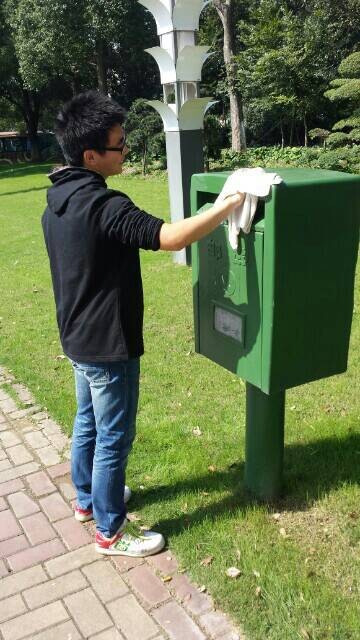 为迎接韩素音大赛颁奖典礼的召开,完成英国365集团公司校团委的分派的任务,2014年10月14日中午10:30,教育与艺术学院教育类专业学生会各部门成员对学院东正门主干道的灯杆进行了擦拭,对主干道的环境卫生进行了清理。并将残留的胶带印和贴纸清理干净。此次清扫从10:30开始,一直到11:30结束,在学生会干事们的配合与努力下,学院主干道的环境和灯杆变得干净、环境变得优美。学生会干事们圆满的完成了此项任务。