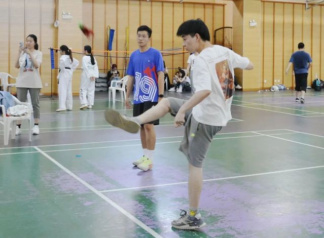 孟夏之日,繁茂生长,体育馆里毽球比赛正如火如荼地开展着。运动员们意气风发的身影让人难忘,他们挥洒的汗水无不彰显着学前人勇往直前、全力以赴、坚持不懈的体育竞技精神与拼搏精神。