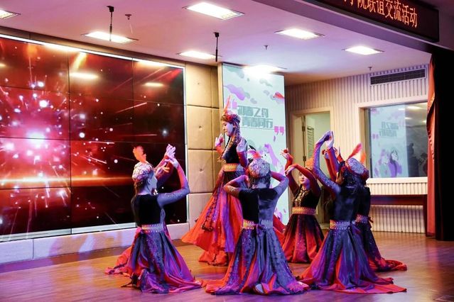来自上海工艺美院数码艺术学院的少数民族同学们,为我们带来了自由活泼的民族舞《石榴花开》。她们身穿一抹鲜艳的石榴红,展现出婀娜的舞姿与独属于自己民族的魅力。