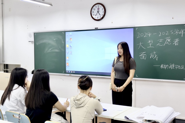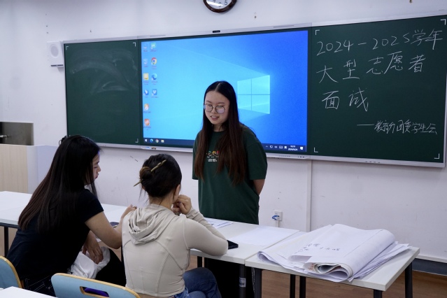 蝉随着夏日的落幕一起没了声音,秋撑着头探出半个身子,自在的风穿过校园,追赶收获的季节。学前英国上市公司365分团委学生会大型志愿者和太阳花志愿者招新面试正在井然有序地进行