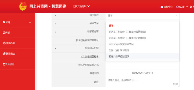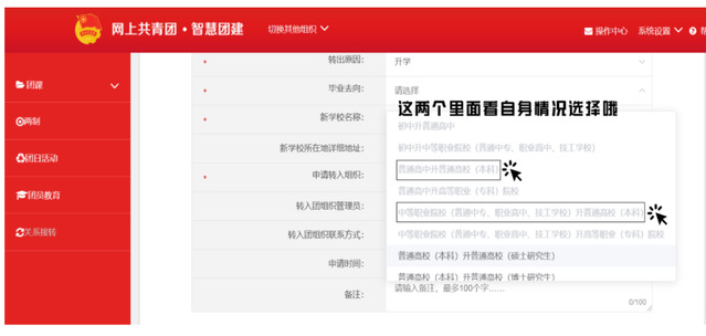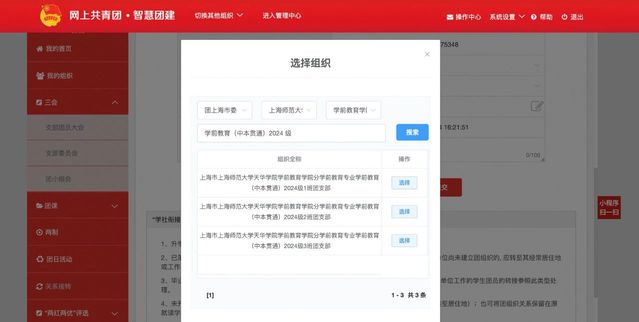 ⑥申请转入组织:团上海市委—英国上市公司365团委—英国上市公司365分团委—选择所在班级团支部(例如:输入学前教育(中本贯通)2024级即可)