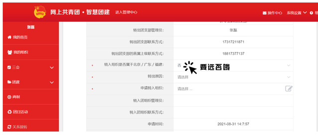 ① 转入组织是否属于北京/广东/福建:否