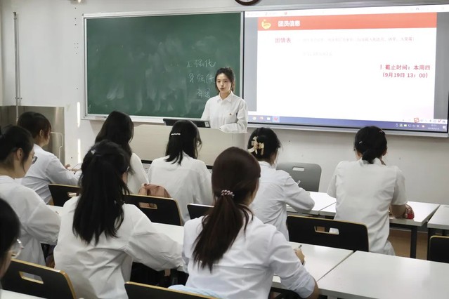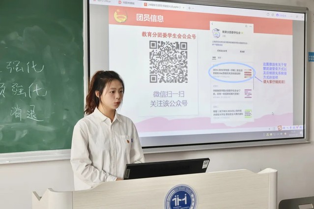 首先秦帆同学向各团支书介绍了基本工作内容,仔细讲解了新生团情表的注意事项、团员证丢失补办流程和团费的收集等各项基础工作,强调了团员应自觉完成青年大学习。作为团支书,应起着带头模范作用,要及时督促与监督。