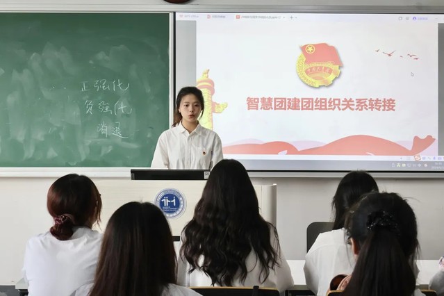 随后秦帆同学着重指出了智慧团建团员团组织关系转接的工作必要性和紧急性,详细介绍了智慧团建一系列流程,示范了系统里的关系转入的操作步骤,确保每一位团员都能尽快加入所属支部。
