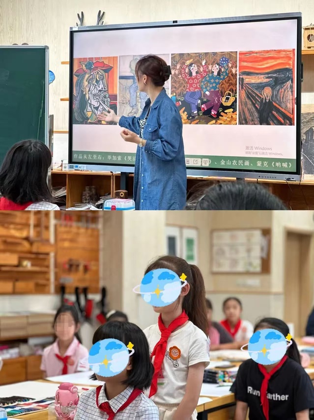 活动主题为“情绪编织”,旨在通过活动帮助学生更好地理解和表达自己的情绪。活动伊始,李老师通过展示毕加索的《哭泣的女人》、梵高的《悲伤的老人》和蒙克的《呐喊》等经典艺术作品,引导学生们深入了解不同艺术家所表达的情感与内涵。这些作品不仅为学生们提供了情绪表达的视角,也为他们的创作打下了坚实的基础。