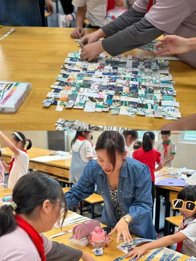 同学们的情绪表现各异,有开心、放松、也有焦虑、烦躁……。随后,活动进入小组合作环节,大家将自己的画作剪成细长条,通过组合与编织,形成一种特别的情绪交织。这一过程不仅锻炼了同学们的团队合作能力,也激发了他们的创造力,大家在轻松愉快的氛围中畅所欲言,分享彼此的作品与想法。