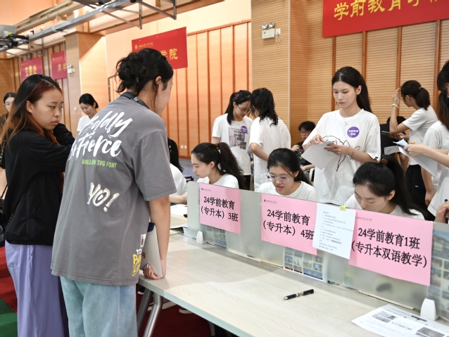 担任志愿者的学长学姐们早已整装待发,