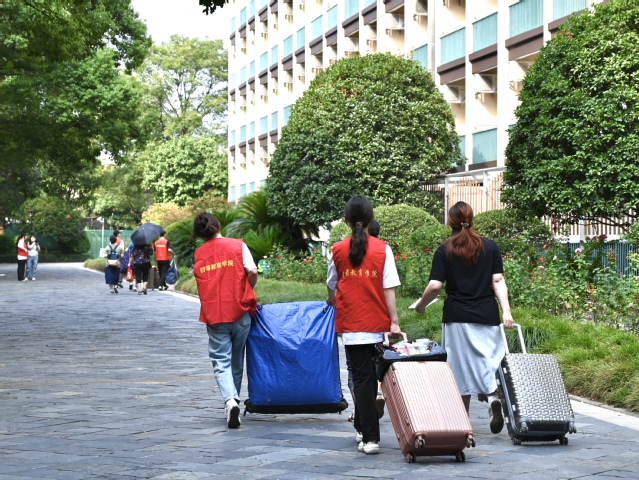 接过新生们手中的行李