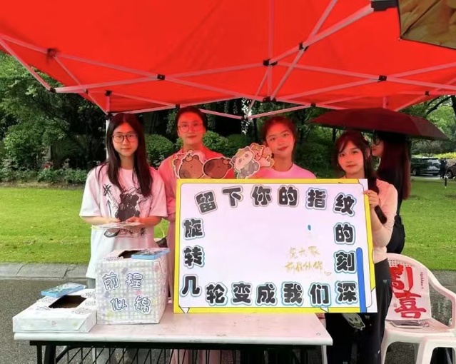 毕业不是结束,而是新的开始。随着毕业钟声的临近,我们策划了“留下你的指纹”手印画活动。毕业生们在白板上留下指纹和创意涂鸦,共同绘制出属于我们的回忆。每一个指纹都是我们在大学里青春的记忆,记录着我们这些年在校园里的热血与拼搏。