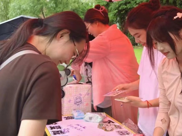活动设有的最有趣且有意义的环节莫过于明信片的抽取。当毕业生们将自己留有祝愿的明信片投入抽取箱中,他们可以在学弟学妹们留下的祝福中抽取一张作为纪念。他们或许会因为抽到一张留有喜欢的励志话语和图案的明信片而激动不已,也或许会因为与毕业生们的留言产生共鸣而倍感温暖。有些书写明信片的同学还留下自己的联系方式,为毕业生们与学弟学妹们提供了一个交流的平台,成为彼此的倾听者,让毕业生们在离开熟悉的校园之后还能知道一些相关消息,也让学弟学妹们结交一些能够给她们带来建议与帮助的学长学姐们。
