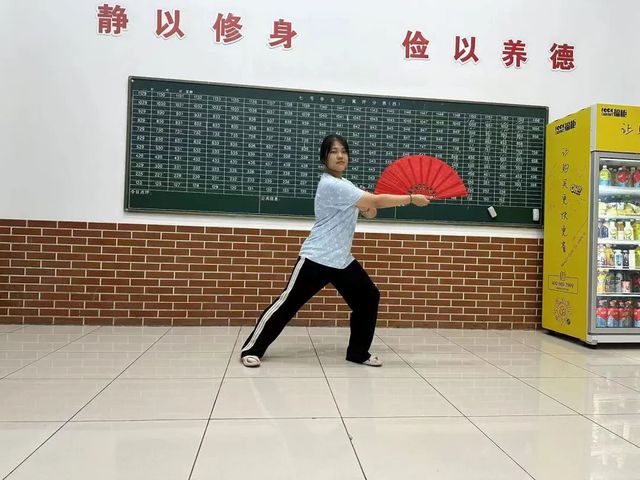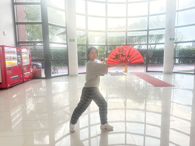 华英功夫扇队在10.15晚上六点前完成了线上面试,同学们跳了功夫扇基本套中的前四个动作,展现了自己以柔克刚的优美姿态与气质。