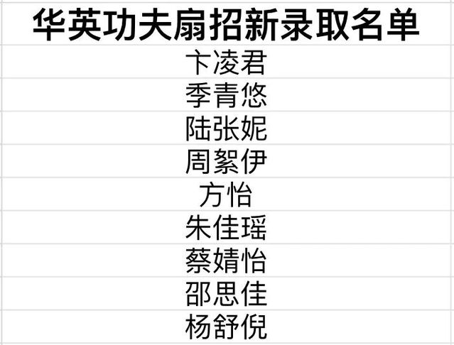 (图片30:功夫扇队录取名单)
