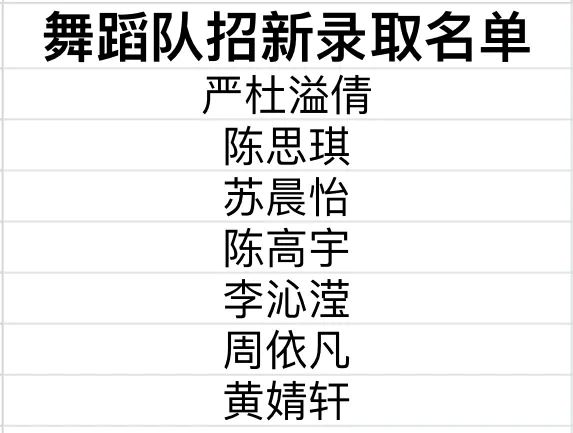 (图片19:舞蹈队录取名单)