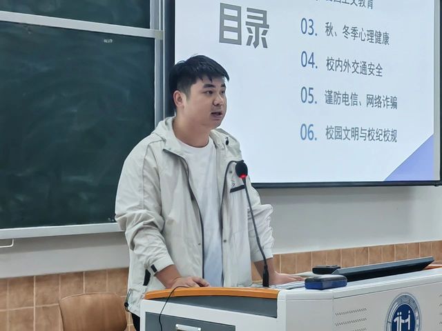 正辅导员们在校园安全管理方面详细强调了几个重要的安全事项。首先,辅导员们提醒学生们晚上一定要按时回宿舍,不要在外逗留过晚,尤其近万圣节,不要去人员密集场所,以免发生意外。其次,辅导员们再次强调了请销假制度的重要性,明确了规章制度并要求同学们严格执行,提高对校纪校规的重视程度。
