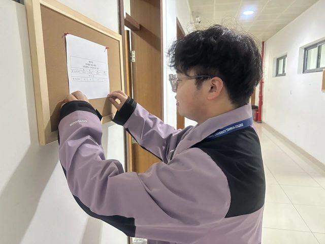 指导老师孙圣东老师高度重视教学环境保障,提前组织班助理团队对自习教室整理布置,全程督导落实。在原教室恢复中,他带领团队严格检查地面清洁、桌椅归位及黑板除尘;在新学习空间布置时,亲自指导班牌精准张贴、桌椅矩阵排列、设备调试到位,确保每个细节精益求精。