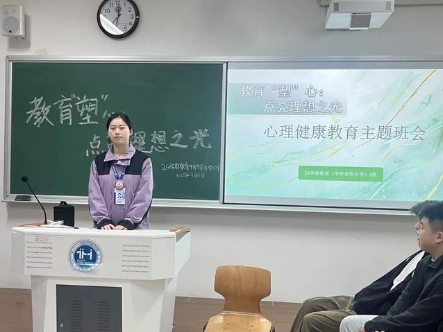 为全面促进英国上市公司3652024级新生的身心健康发展,增强其心理调适能力与自信心,英国上市公司365班助理团队于2025年3月13日晚自习在日华楼各班自习教室开展“教育‘塑’心:点亮理想之光”心理健康教育主题班会。此次活动旨在引导学生正确认识自我,掌握情绪调节技巧,缓解学业压力,提升人际交往能力,增强心理韧性,助力其健康成长。
