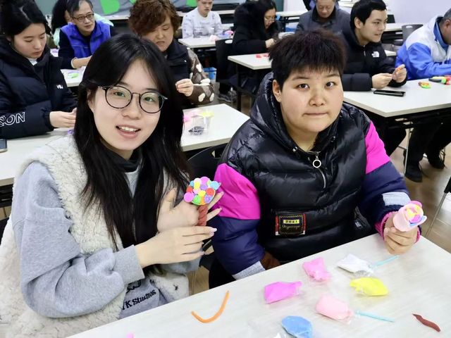 结合学员的创意与志愿者的帮助,五颜六色的超轻粘土树制作完成了。每一棵用超轻黏土精心塑造而成的树都展现出别样的风采。它们造型各异,有的枝叶繁茂,有的枝干挺拔,色彩丰富。学员们看着自己的作品,脸上洋溢着开心的笑容,满满的成就感溢于言表。