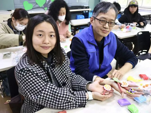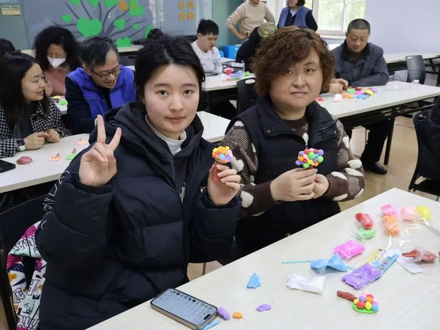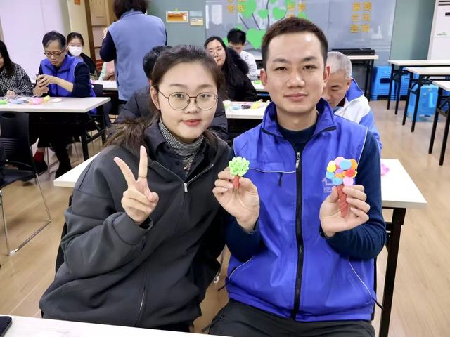 在这次志愿活动中,我有幸陪伴了一位叔叔一起制作黏土手工。他对手工充满了兴趣,虽然动作稍显缓慢,但每一步都做得很认真。我主要负责帮他准备材料,并在他需要时给予一些小小的协助。当他看到自己做出的成品时,眼睛里闪烁着满足的光芒,嘴角也忍不住上扬,那种成就感让我感到无比温暖。整个活动中有人专注地捏着黏土,有人开心地和同伴分享自己的作品,还有人用幽默的语言逗得大家哈哈大笑。整个空间充满了欢声笑语,仿佛每个人都在用自己的方式表达对生活的热爱。