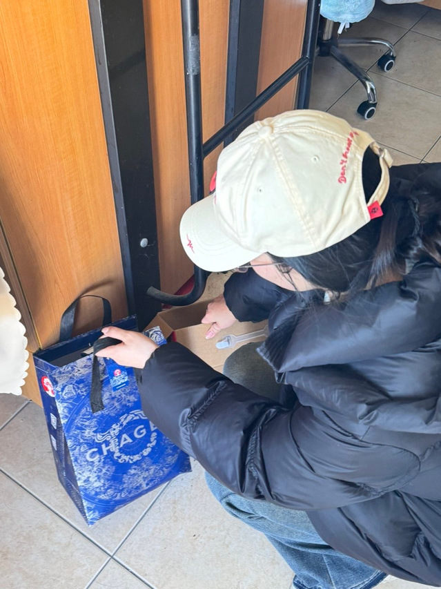 (图片5:入党积极分子陆岱嘉帮助同学清理寝室垃圾)