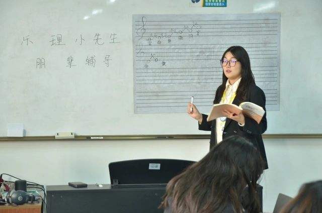 张亿佳小先生教学内容为视唱练耳,她将教学重点放在了学员音准控制与旋律视唱能力上。她通过弹奏单音及节奏拆解,加上反复训练,加强了学员们的视唱能力。此外,针对学员高音区发声困难这一痛点,她带领学员进行了开嗓训练,改善了学员高音区发声的稳定性,提升了学员视唱的信心。