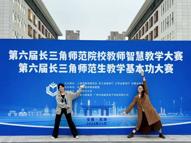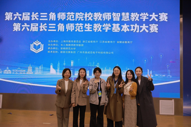 为贯彻落实《中共中央国务院关于弘扬教育家精神加强新时代高素质专业化教师队伍建设的意见》,加强师范生教师职业能力培养,全面提升师范教育水平,2024年11月15日至11月17日,第六届长三角师范院校教师智慧教学大赛和师范生教学基本功大赛在安徽师范大学成功举办。经过前期上海初赛激烈角逐,我院教师和血在初赛中脱颖而出。教师夏雪、张宁参加人文社科组赛道的决赛。学生徐敏瑞,朱嘉仪分别参加综合美术组和学前组决赛。