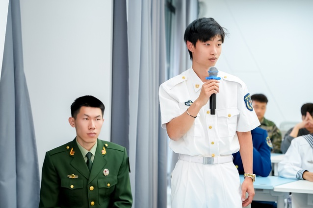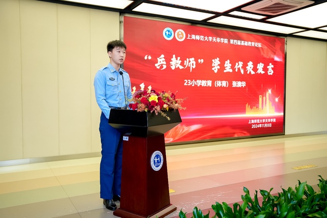 来自23小学教育(体育)专业的张澳华作为“兵教师”优秀学生代表发言,他表示专业开设的各类教育类课程和丰富多样的体育选修课程,不仅极大地拓宽了他的知识视野,更为他将来成为一名既能传道授业又能强身健体的全能型教师打下了坚实的基础。