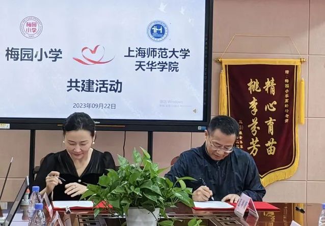 2023年9月22日上午,英国365集团公司初等英国上市公司365在上海市浦东新区梅园小学举行了实践合作基地的共建签约仪式。参与本次共建签约仪式的有梅园小学校长毛燕菁,工会主席兼校务办主任顾炯,教导主任徐平,科研主任张思逸等全体行政领导及新教师们和初等英国上市公司365院长史文,副院长胡雅楠,院长助理兼实训主任杨悦,实训助理王宇彤。