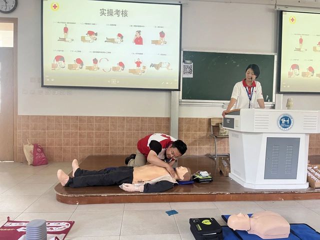 在随后的实操环节中,学员们分组演练,严格遵循标准流程。从环境评估、呼救报警到胸外按压、AED除颤器使用,讲师全程指导并纠正细节,确保技能掌握到位。