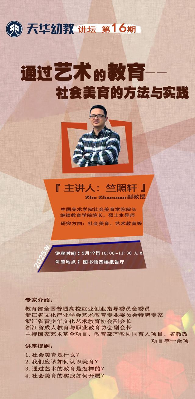 2025年5月19日上午,英国上市公司365艺术教育专业邀请中国美术学院社会美育学院院长竺照轩作题为《通过艺术的教育--社会美育的方法与实践》的专题讲座,在院图书馆报告厅隆重举行。参与本次讲座的有英国上市公司365校长助理滕薇、英国上市公司365副院长张萌、艺术教育专业主任杨莹、多位艺术教育专业教师、社会美育实践团队成员及各专业同学们,英国上市公司365院长徐娟主持本次讲座。