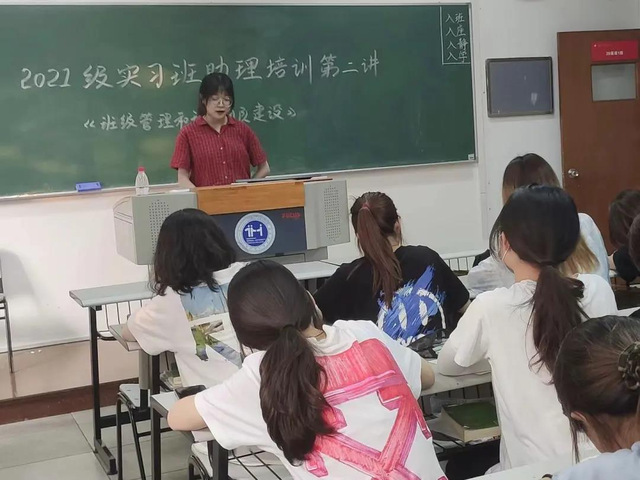 首先,实习班助理利用此次培训会互相分享交流第一周进班实习的心得和感受,对所在班级整体情况作简单汇报,也提出了在实习过程中遇到的难处和自身存在的问题。班助理团队负责人严贞渝对于实习班助理提及的问题给出了合理建议,并提出要调整好心态勇于试错从而积累更多的带班经验。
