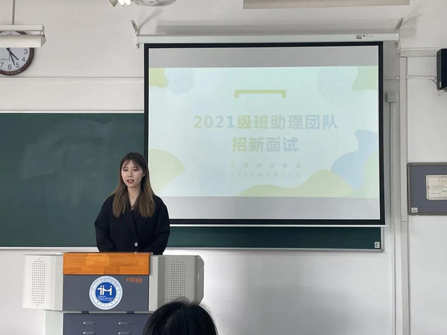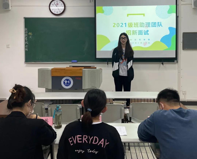 招新面试时,每一位面试同学分别进行了简短的自我介绍、说明自己对班助理工作的认识以及阐述了自己的带班思路。评委老师根据面试同学的自我介绍以及大致阐述对工作的认识,并结合之前每人递交的个人简历和申请表,分别对于自身基本情况、随机应变能力、抗压能力、团队责任归属感、自身学习与工作之间的平衡等,针对性地提问每一名面试选手。