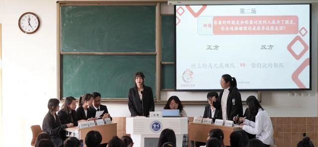 本次初赛的辩题是“你最好的朋友和你最讨厌的人成为了好朋友,你会选择继续还是放弃这段友谊?”。共有六支队伍参加比赛,两两PK,比赛共分为三场。