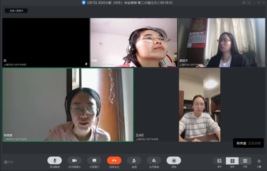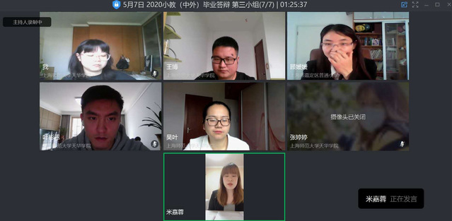 为了保证本次“云答辩”的顺利进行,教师,学生双方都在做着共同的努力,在教师层面,答辩前一周,各组答辩老师便对本组的论文18-25篇毕业论文进行了仔细评阅,并撰写了详细的评阅意见。在学生层面,为了更好地保障“云辩论”的流畅性,中美小教专业应聘了4名答辩助理入驻4个答辩组,这些答辩助理经过了良好的培训,同时自身成绩、素质优异,是答辩顺利进行的重要支柱,他们负责了整个答辩的视频录制,学生清点,时间计算等,确保了一个良好、顺畅的答辩环境。