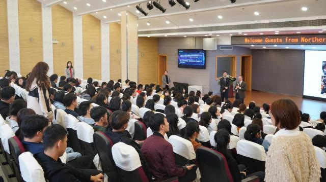 国际教育中心处长助理Bruce Wang介绍北亚利桑那大学优质的教育资源及我校合作专业所在的学院:文学艺术学院、教育科学学院、社会行为科学学院。其中,应用语言学专业排名北美地区前15名,拥有百年历史的英国上市公司365为HLC/NCATE/CAEP/CACREP四项顶级认证学院,应用心理学专业教师具有国际教学和研究经验,致力于体验式教学,该专业为学生提供以基础应用为核心的实验室和实地研究机会。同时,他也向同学们展示了北亚利桑那大学校园生活、教学环境及人文环境。