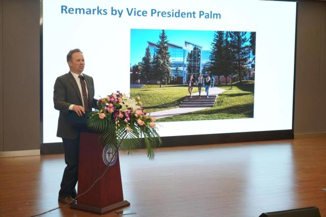 美国北亚利桑那大学副校长Daniel Palm引用“学而不思则罔、思而不学则殆”,鼓励大家利用大学美好时光,致力学习、挑战自我、挖掘长处、自我解决问题、学会提问,勇于面对教学与生活角色适应。