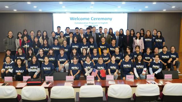 2019年10月28日,美国北亚利桑那大学(Northern Arizona University)来访我校,就两校合作深入商洽,并隆重举办2019级英语(国际课程合作)、学前教育(国际课程合作)、应用心理学(国际课程合作)专业开班仪式。美国北亚利桑那大学副校长Daniel Palm、国际教育中心副主任Bruce Wang与53名英语(国际课程合作)、49名学前教育(国际课程合作)、44名应用心理学(国际课程合作)专业新生见面。我校校长叶才福、校监兼初等英国上市公司365院长史文、健康学院院长祝亚平、国际交流处处长胡珍、学前英国上市公司365副院长徐娟及国际交流处、各专业负责人和辅导员出席仪式。仪式由学前英国上市公司365副院长徐娟主持。