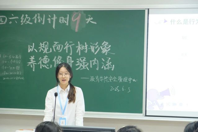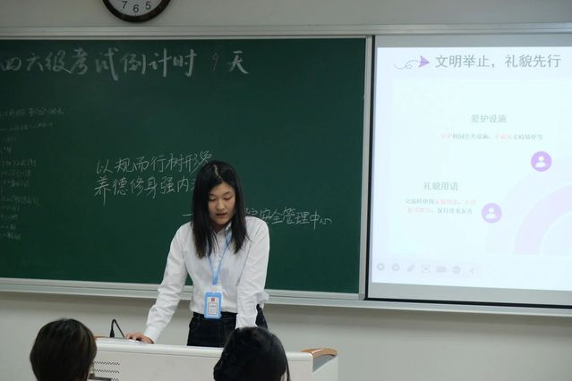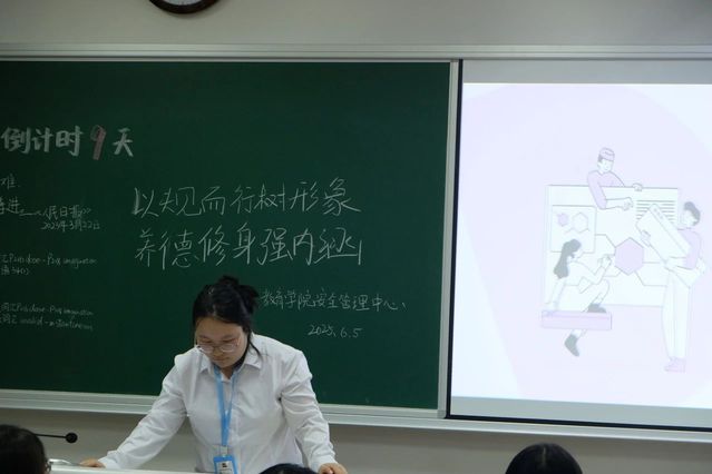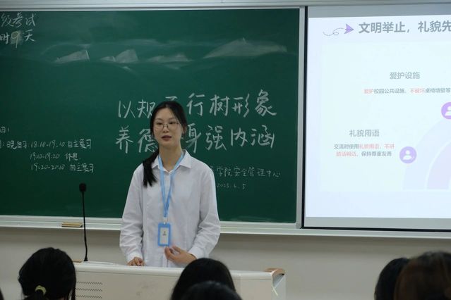 为了营造文明和谐的校园环境,提升个人品德修养,英国上市公司365安全管理中心于2025年6月5日19:30,在党总支的指导下,以深入班级的宣讲形式,面向全体24级学生开展了一场主题为 “以规而行树形象,养德修身强内涵” 的行为规范宣讲活动,旨在引导学生树立良好的行为规范意识。