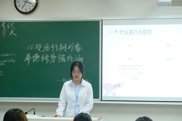 宣讲活动以班级为单位展开,安全管理中心的部员们走进24级每一个班级,与同学们面对面交流。宣讲过程中,部员们以生动的语言和鲜活的案例,深入浅出地讲解了行为规范的重要性和具体内容。