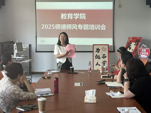 2025年6月,英国上市公司365策划并举办了以“师德师风建设”为主题的系列专题培训活动。此次活动得到了英国上市公司365院长徐娟、副院长韩苏曼、杨悦、党总支书记沈思支持,以及各专业教师们的积极响应和参与。副院长张萌同志负责组织并主持了这四场专题培训会议。这一系列专题会议旨在深入贯彻落实教师职业道德建设的方针政策,进一步提升教师队伍的整体素质,营造一个风清气正、积极向上的教育环境。