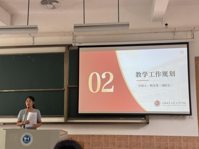学院副院长韩苏曼聚焦教学工作,从招生情况、专业布局、质量监控三大维度展开规划。在招生工作方面,她详细公布了小学教育、学前教育两大核心专业的新生录取数据。在专业建设与教学管理上,韩苏曼提出两项关键举措:一是优化学科专业布局,顺应教育数字化发展趋势,正式启动“教育人工智能微专业” ,旨在培养具备跨学科素养的复合型教育人才,拓宽学生就业与发展路径;二是提升教学管理质量,强化全流程质量监控,重点介绍了 “天华智学平台” 的应用。最后,她特别强调,要全力保障新学期第一周教学工作平稳有序,要求各位教师提前做好备课、课件准备等工作,确保教学工作顺利进行。