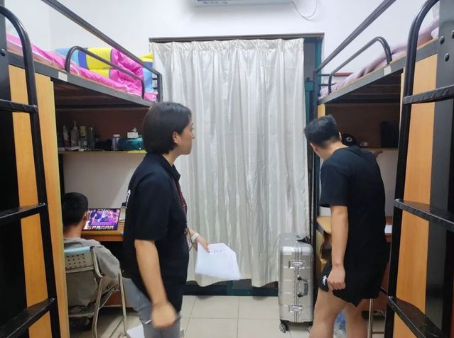 当晚,辅导员又带领部分班级助理深入各学生寝室,查看住宿环境是否合规、生活设施是否完好,再次重申用电与财产安全要点,还与新生亲切谈心,回应了大家在住宿安排、生活便利等方面的问题,让新生切实感受到学院的关怀与温暖。